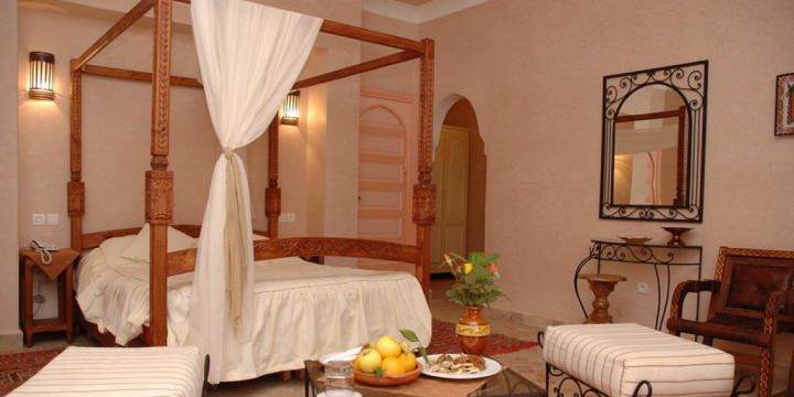 With an area of 62 m², this large suite is the most spacious of the riad. It includes a flat-screen TV, a private lounge and a fireplace. It can accommodate up to 2 extra beds.